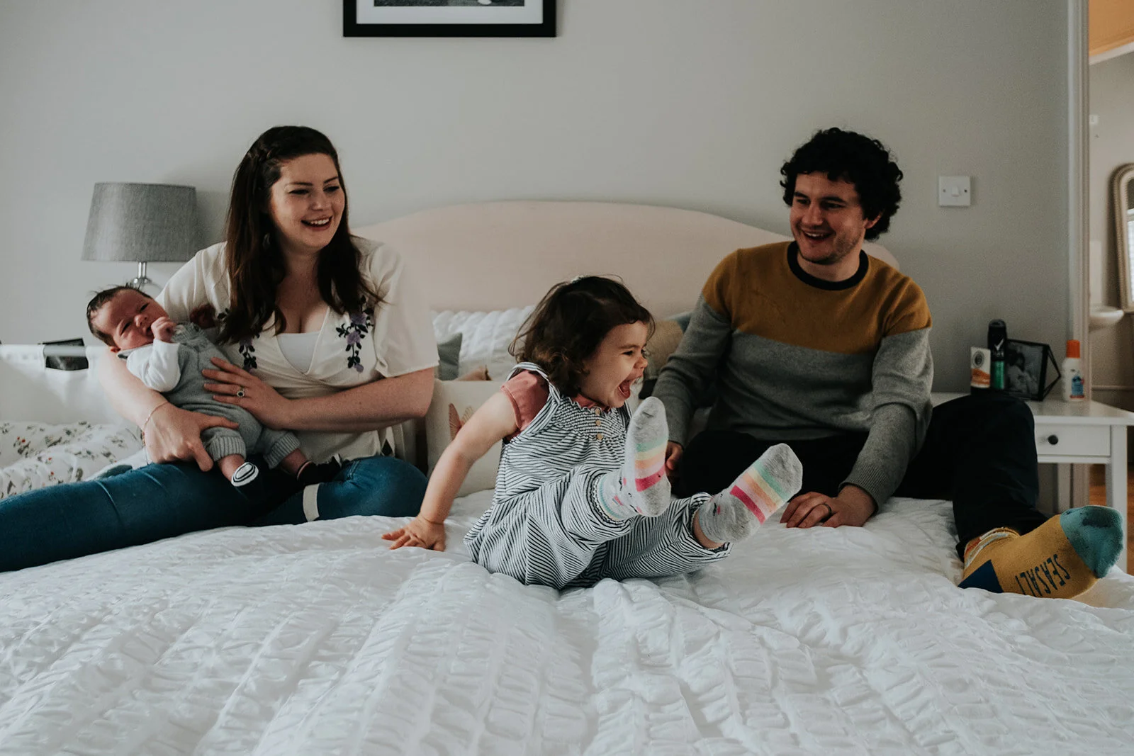 Oh man, this family. In April 2019 I met them for their first Year in The Life session. Rupert was 4 weeks old, and Rose was just 2. We had an hour-ish in their home, having lunch and playing, with a few snaps on Izzie and James’ bed for good measure. They’re one of the loveliest families I’ve ever met! Six months later I popped back round, this time for waking up from naps, weaning, reading books and playing instruments.