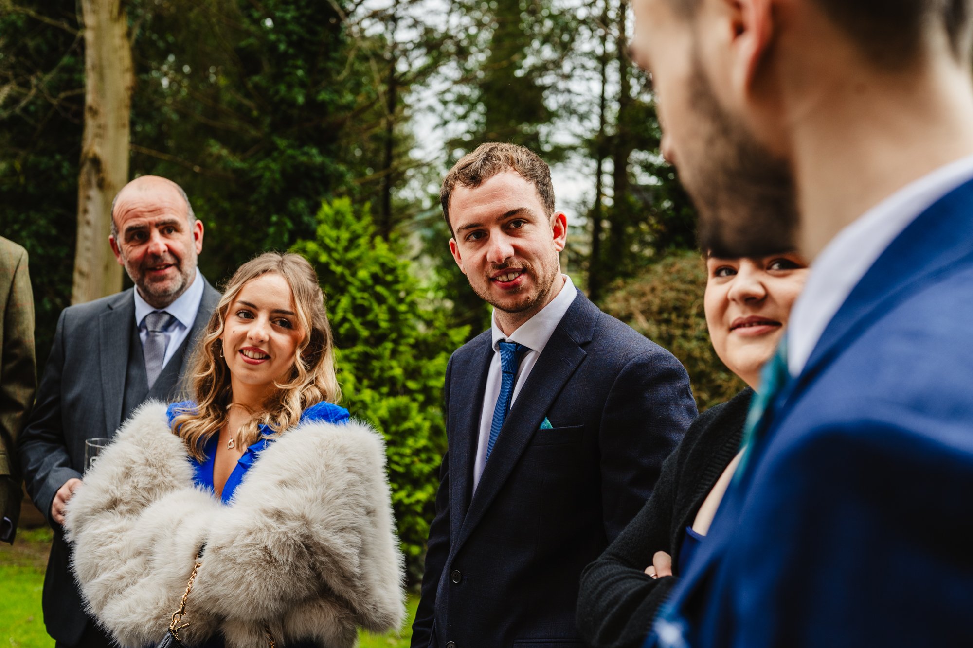 Meg and Paul got married at Ruthin Castle in early March, in a small ceremony with their immediate families. They used the Cornwallis room at Ruthin, which was lovely and cosy, but well-lit from the large bay windows looking out over the 13th century castle. This gorgeous part of North Wales, with the Clwydian range of peaks nearby, is a hidden gem. Meg and Paul wanted to celebrate in a place they loved, that meant something to them, and this fit the bill perfectly. At the end of the ceremony, Meg’s sister sang a couple of songs while Meg and Paul signed the register. Her version of Blackbird brought everyone to tears, including this soppy photographer!