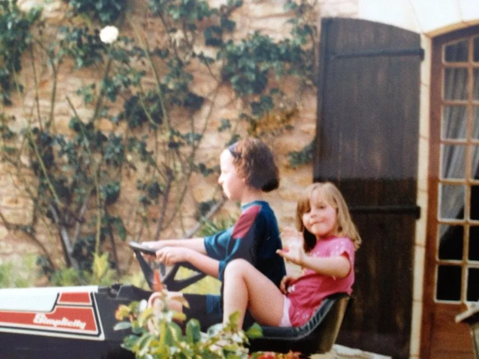 My first time on a ride on mower, on holiday in France when I was maybe 7? Very much a normal kid here.